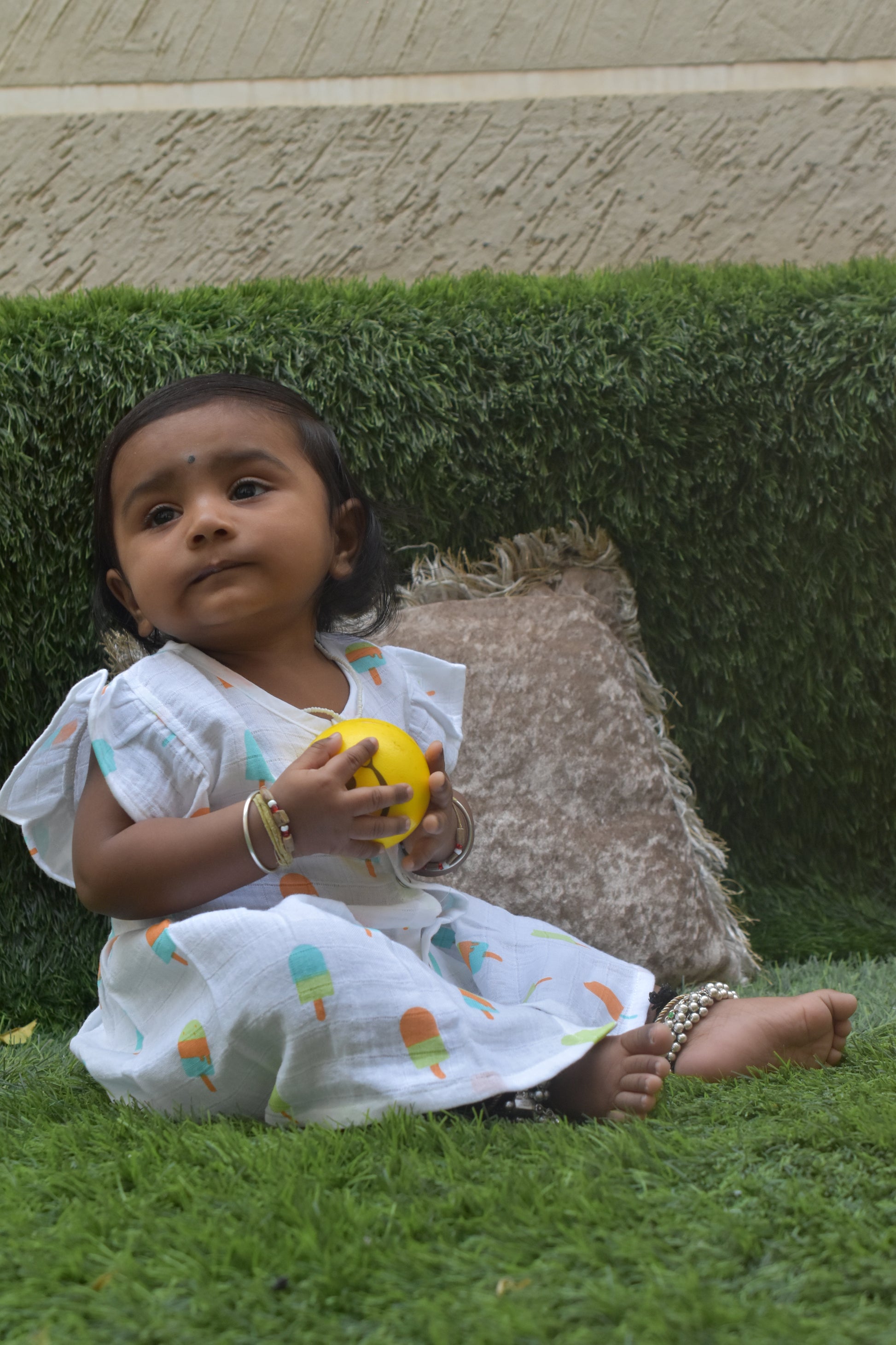 Adorn your Little Ones in Pure Comfort and Luxury with CozyLuxes Organic Muslin Frill Frocks. Alai Collection is a delight. Made with utmost care to provide a light and airy feel it is the perfect option for summer.