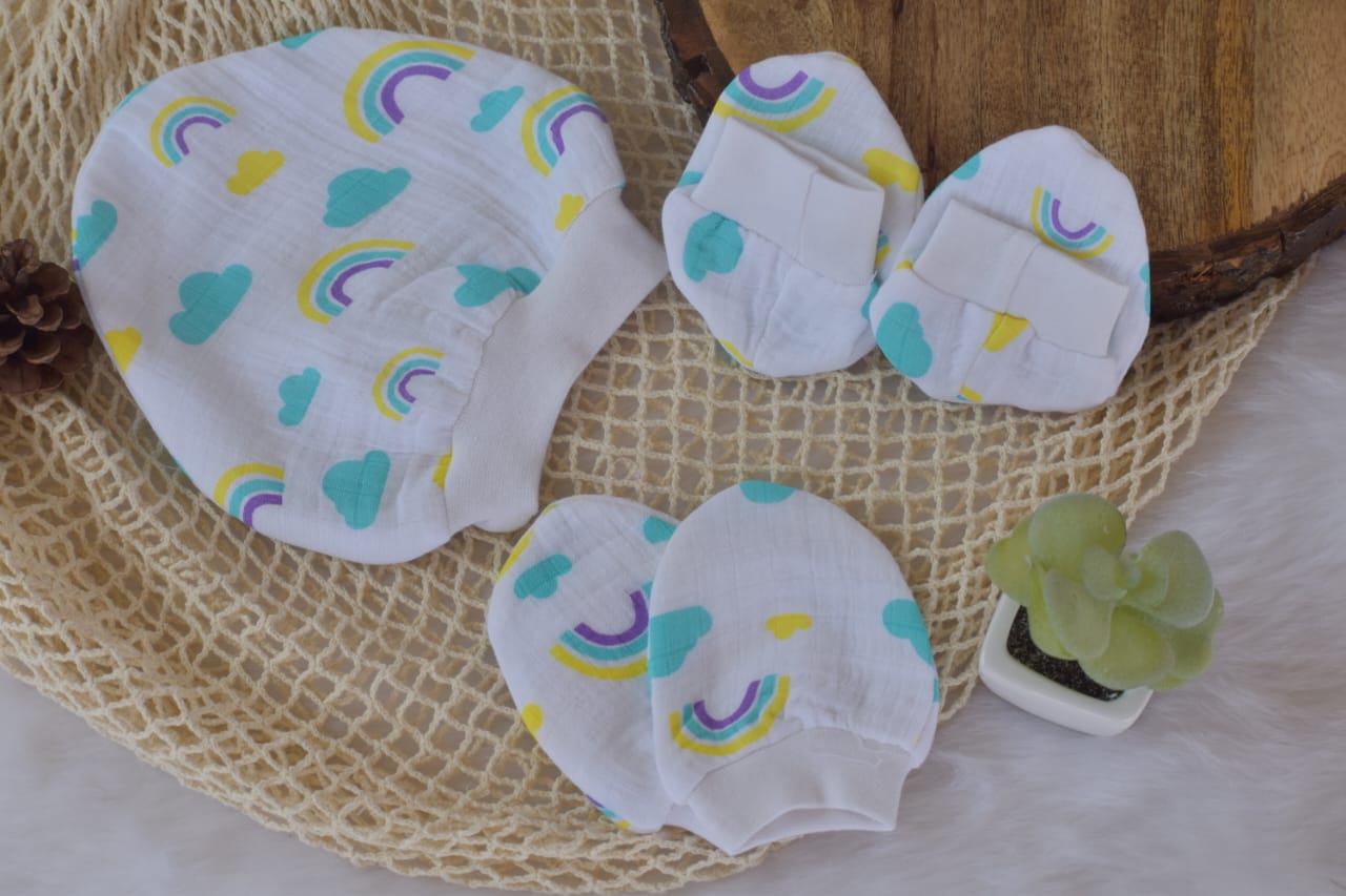 Mittens caps & Booties - Cloudy